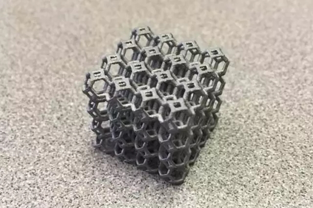 對于工業級3d打印機而言,3d打印材料的堅韌性是決定其應用廣泛與否的一個重要方面。美國普渡大學(PurdueUniversity)研究助理兼實驗室技術員DahlonPLyles為了進行關于晶格結構的概念驗證,用鋁合金3D打印了一個晶格結構的立方體。為了測試這個鋁合金晶格的強度,Lyles和他的團隊對3.9克的3D打印立方體進行了擠壓試驗。最終結果表明,晶格最大能夠承受的重量達到幾乎900磅(408千克)。也就是說,這個小小的立方體結構能夠承受其自身104615倍的重量。